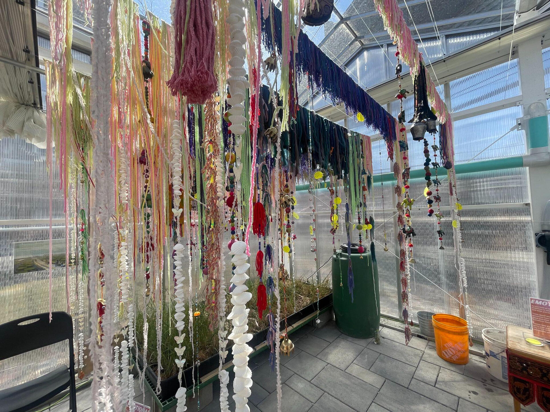 This is the third area: mental. Many people mix up emotions and mental because they are so similar. Mental focuses on the mind and how you process what goes around you.There are a few prompts, the visitors are able to interact with and contribute to this area!First prompt asks visitors to take a sticky note, write out an answer to “What are 3 values you have? What are your no-matter-what’s?”, and place their note on the back wall.Second prompt uses the clear shells to draw a visual interpretation to the question “Do you have enough clarity to your thoughts for them to become wisdom?” and attach their shell to the string web.Third prompt gives the option to write on a new sticky note, or draw again on your shell, expressing “What is a secret you want to let go?”Fourth/final prompt invites visitors to take a tool and a metal board, then bang into the metal with a hammer while considering the thought “What do you wish to see transform?” The metal plates would be later used in the Amulet project by Rhea Vedro at Boston City Hall.
